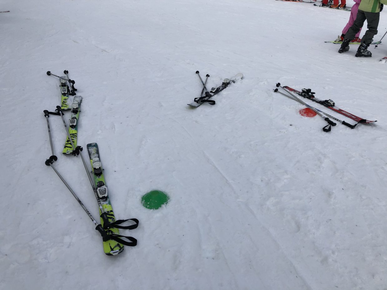 Mit einem Ski geht es los …